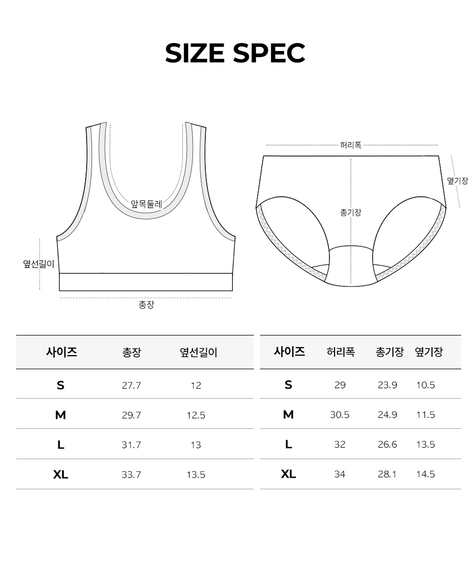 | 사이즈 | 총장 | 옆선길이 | 밑가슴둘레 | 윗가슴둘레 |