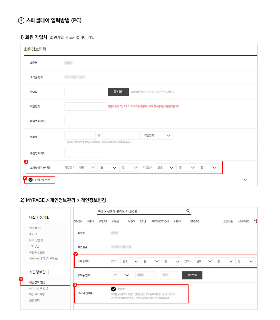 - 스페셜데이 기념일1과 기념일2는 동일날짜 선택이 불가합니다.